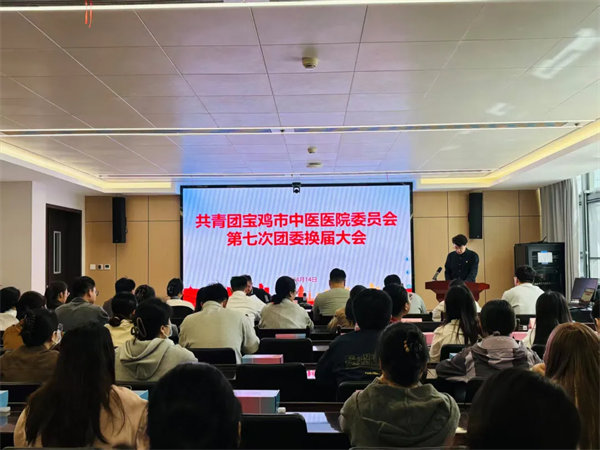 4月14日下午,宝鸡市中医医院召开共青团第七次换届选举大会。市卫健委团委书记谭阳、医院党委副书记、纪委书记赵锁林及全院团员代表出席会议。