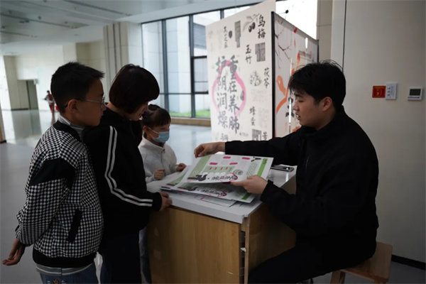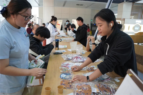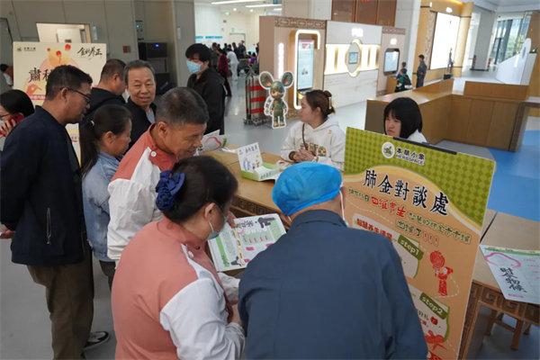 整场活动共设置四大特色板块,各区域都洋溢着广大群众参与的热情。“肺金对谈处”的词条墙前,居民围绕润燥、起居等问题交流探讨,刮卡互动环节的特色中医药文创礼品,让养生知识传递更添趣味。“劳形问道坊”环节,大家跟着志愿者老师一同学练“还阳卧”等功法,在动静间体悟润肺宁神的养生之道,令不少人直呼“简单又实用”。而活动中的“茶事疗愈站”也成了热门打卡点,一杯调神秋茶消解秋燥,居民们喝茶聊天、拍摄养生Vlog,发布社交平台还能兑换时令茶饮,茶香中满是欢声笑语。“敛秋特制局”里,针线穿梭间,一个个“捣药玉兔”中药香囊新鲜出炉,大家将健康祈愿缝进囊袋,让养生文化融入日常。