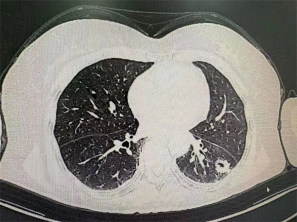 68岁的李女士因间断性上腹痛就医,经我院肝胆脾胰外一科检查,确诊为胆囊息肉,具备明确手术指征。然而,术前的胸部CT检查却意外发现其左肺下叶存在一枚直径约1.9cm的厚壁空洞,且壁厚薄不均、外后缘伴有小结节——这一异常信号,让诊疗团队立刻警惕起来。